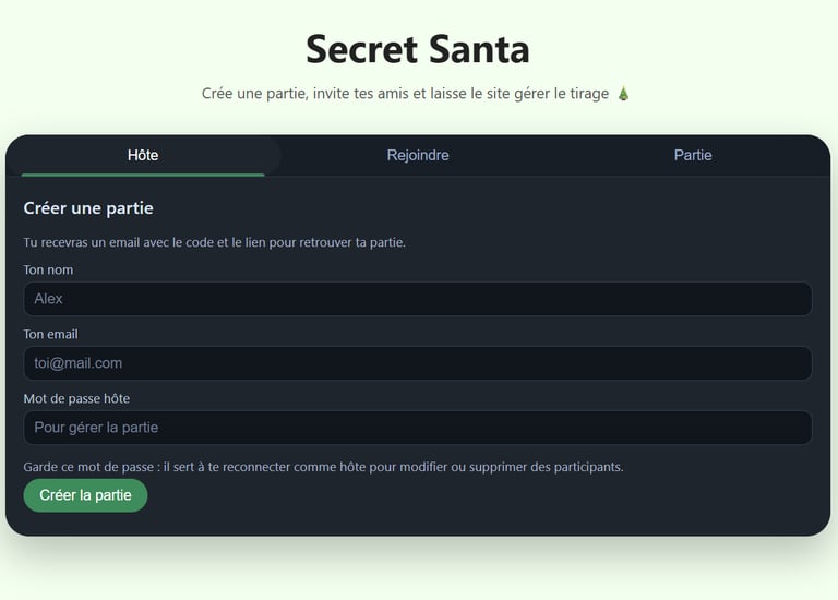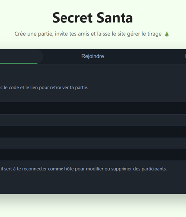 Un outils permettant de créer / rejoindre des groupes de Secret Santa, et de générer un tirage aléatoire pour celui-ci.